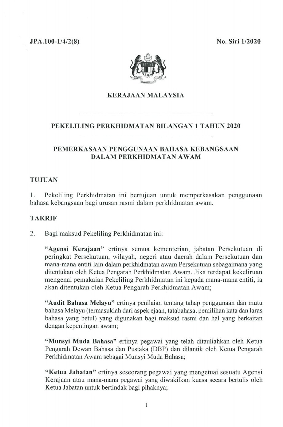 Jabatan Perkhidmatan Awam On Twitter Pekeliling Perkhidmatan Bilangan 1 Tahun 2020 Pemerkasaan Penggunaan Bahasa Kebangsaan Dalam Perkhidmatan Awam Muat Turun Pekeliling Di Pautan Https T Co Bwrh1mwytr Zukiali Jpmgov Jpenerangan